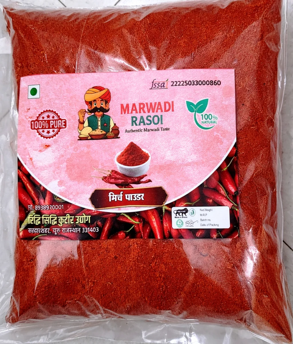 The Lal Mirch Powder enhances the tangy heat of Delicious Mango Pickle while the crunch of Marwadi Special Masala Papad adds perfect texture. Together with Rajasthani Sada Mung Dal Papad, every bite feels balanced, spicy, and utterly satisfying.