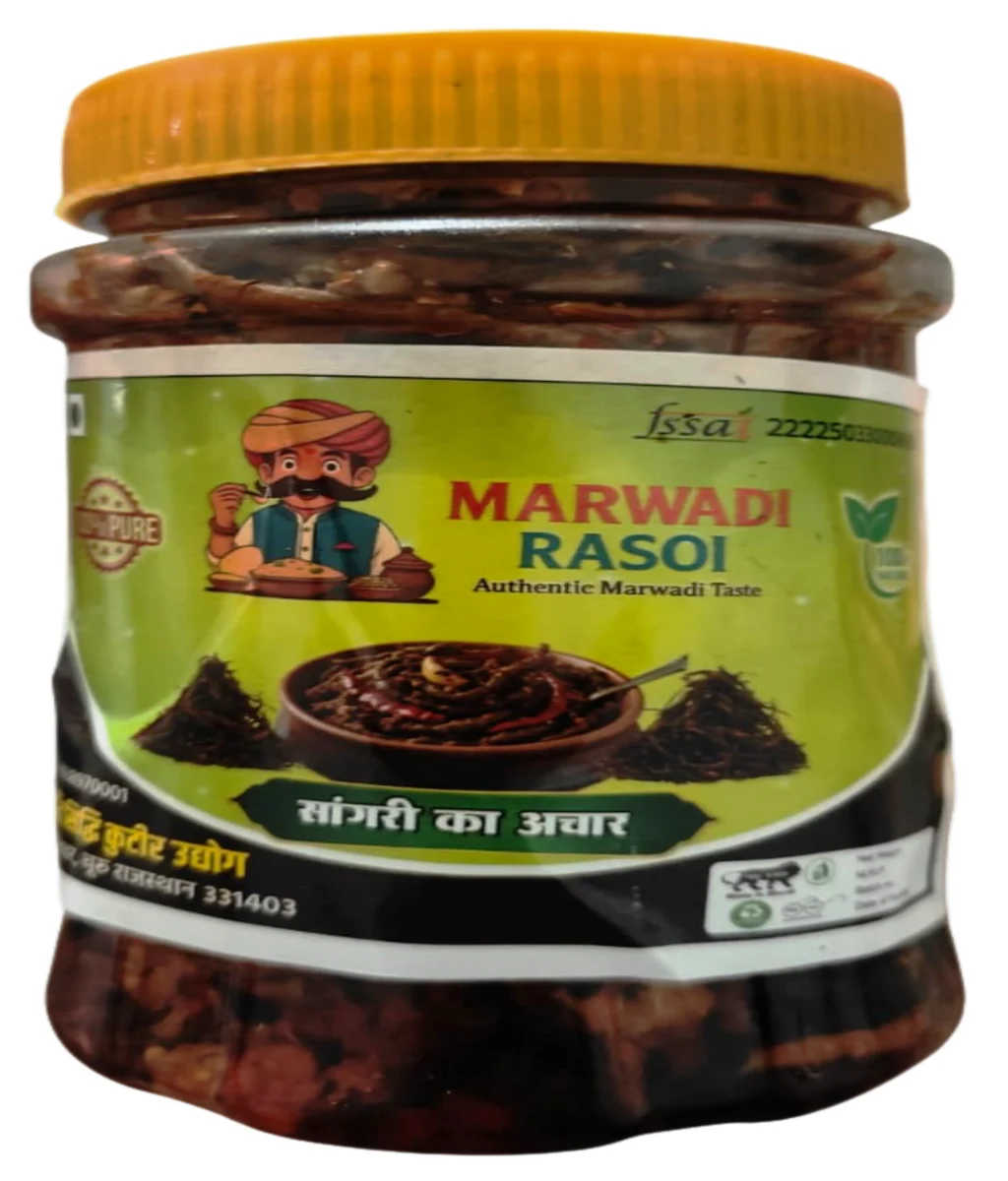 The refreshing spice of Delicious Mango Pickle makes a perfect companion to crunchy Rajasthani Sada Mung Dal Papad and bold Marwadi Special Masala Papad. A dash of Lal Mirch Powder transforms Pure Desert Sangri into an irresistible culinary experience.