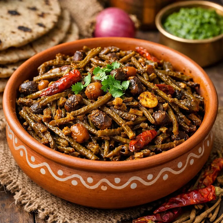 Pure Desert Sangri blends beautifully with the earthy notes of Rajasthani Moth Dal Badi, while the vibrant spiciness of Lal Mirch Powder heightens every bite. Enjoy with Rajasthani Sada Mung Dal Papad — an unforgettable combo at lunch or dinner.